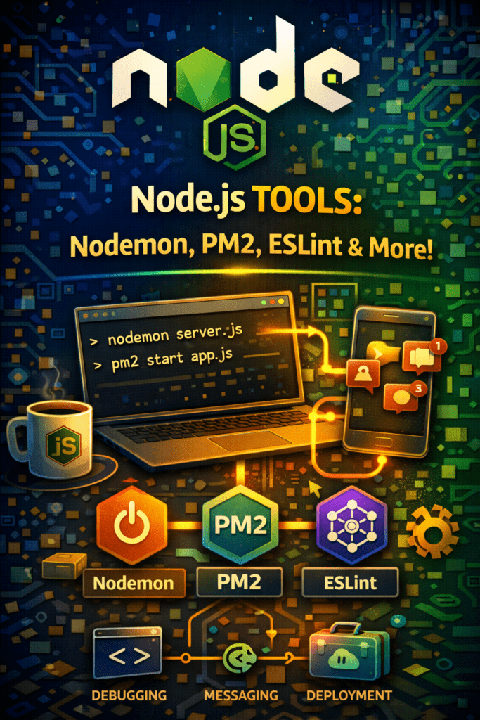 Developing with Node.js can be significantly enhanced by utilizing the right tools. These Node.js important tools not only streamline your workflow but also improve the quality and maintainability of your code. This guide will walk you through some essential tools: Nodemon, PM2, NVM, Postman/Insomnia for API testing, ESLint + Prettier setup, and Husky for Git hooks. So, let’s get started!