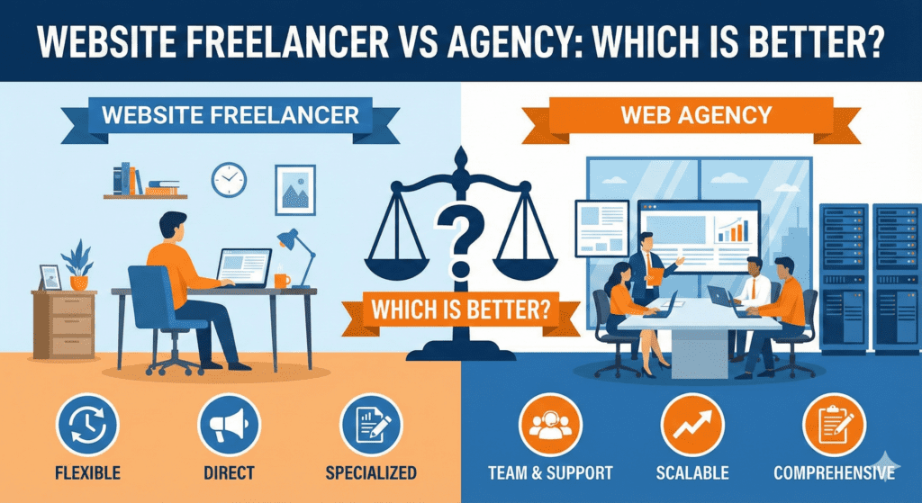 Q: How do I choose between a website freelancer vs agency for my e-commerce site?